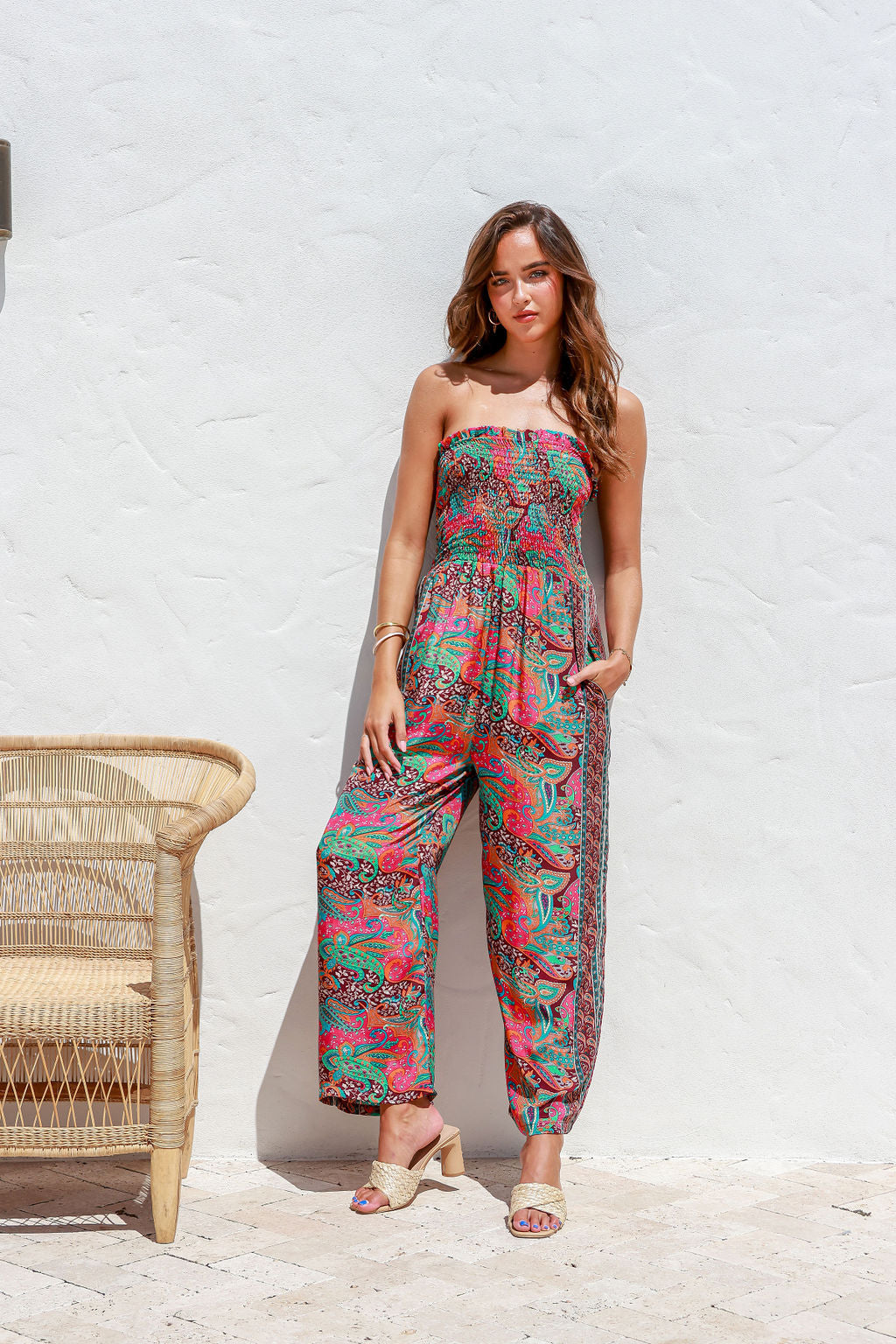 Lily T's newest design - the Marley Jumpsuit. Coming in two fun bright prints this flattering style can be worn with a cardigan or denim jacket in cooler months. It is perfect for your next holiday.